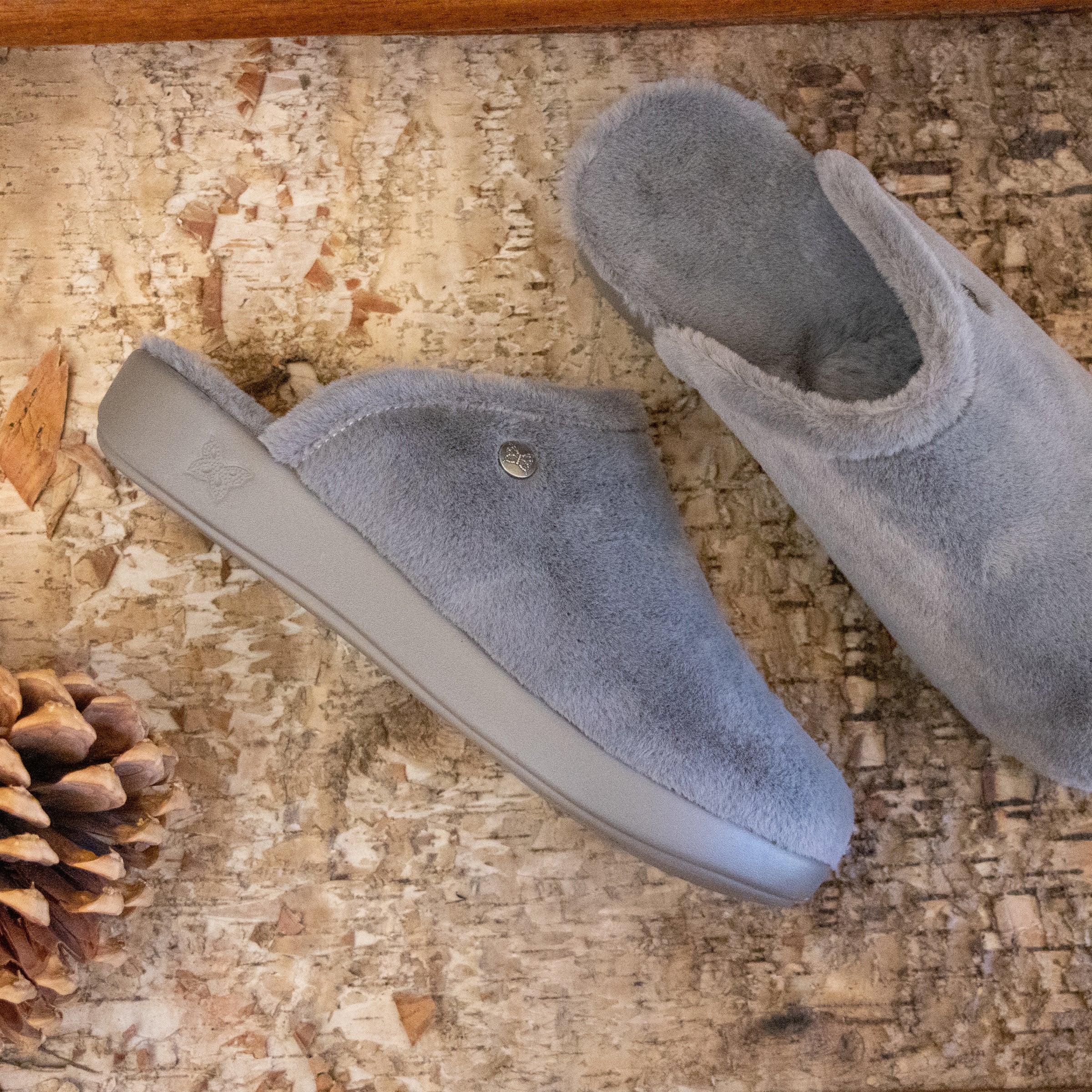 Featured in a plush Fuzzy Wuzzy Grey colorway. These slippers are so comfy that you'll forget to take them off!