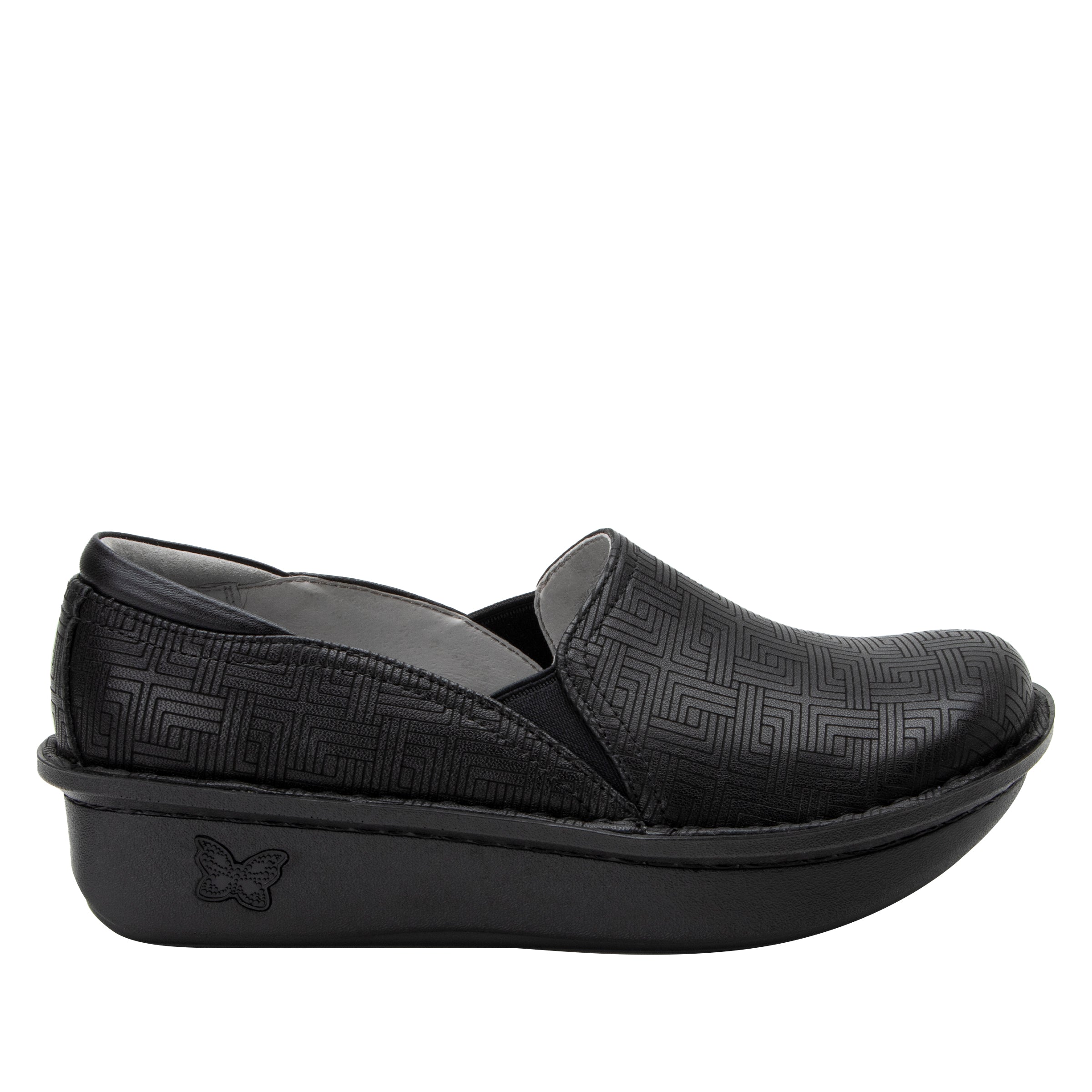 Featured in a Lock In pattern etched on a genuine leather upper.
