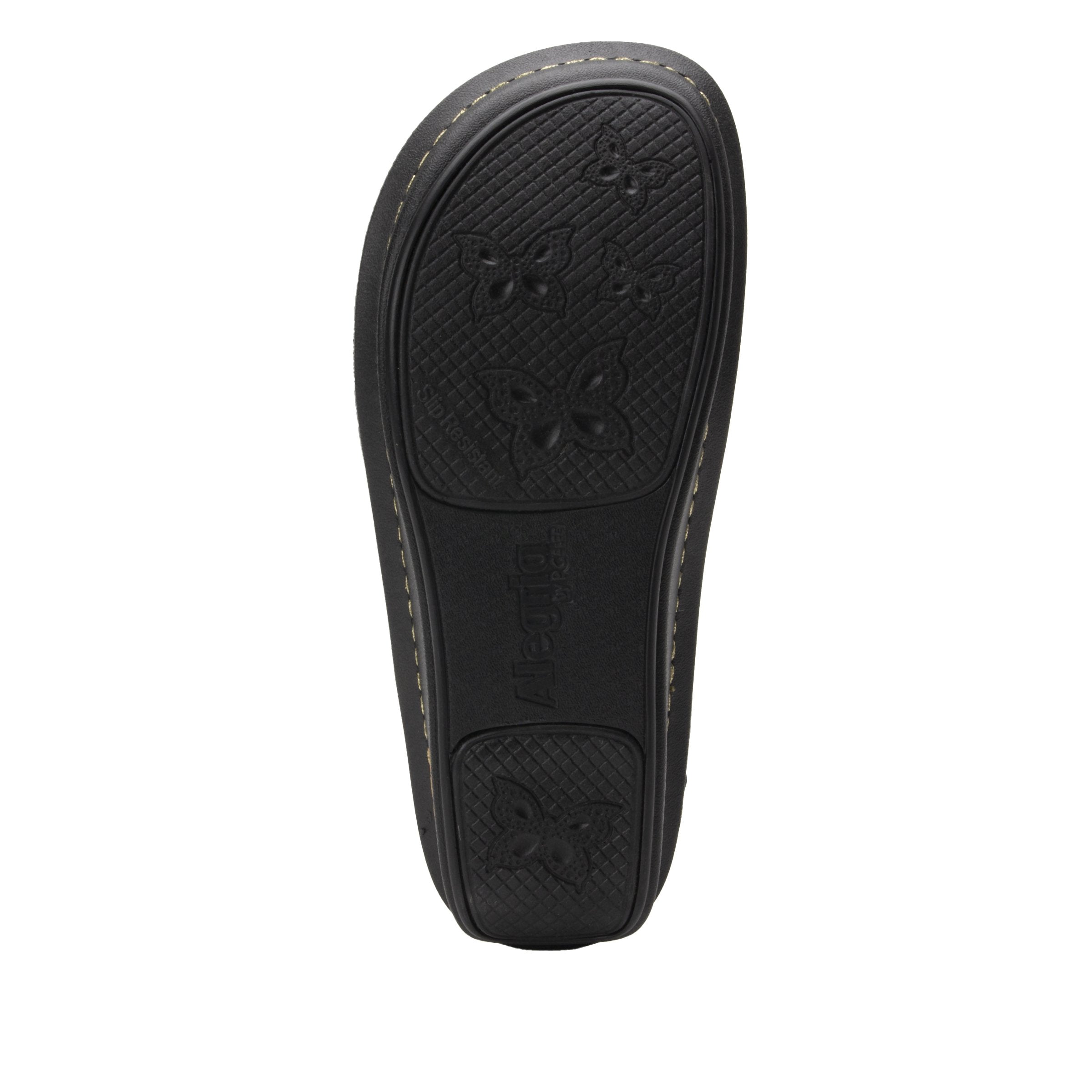The Kasha is a hand-stitched leather slide made on our Classic Rocker outsole, designed to improve pressure distribution for all day comfort. The patented footbed is ergonomically designed to conform the natural contour of the foot, working to relieve legs, hip and back from long standing hours. The fashionable upper features two adjustable hook-and-loop closures and an ornate buckle for aesthetics.